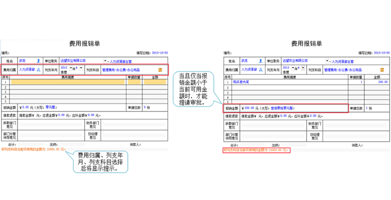 支持借款、付款、报销等费用使用功能,并生成台账。