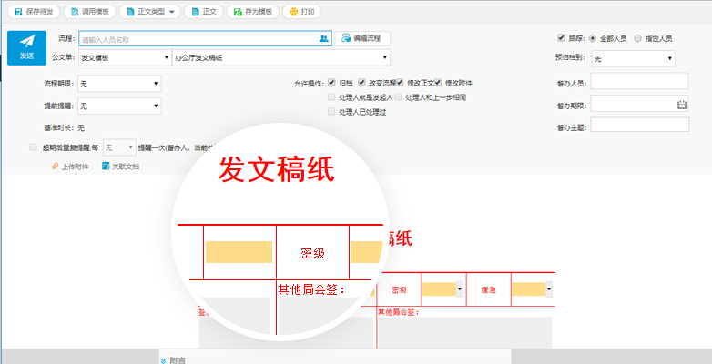支持出差申请管理、文件审批与呈递、上级请示和印章使用管理
