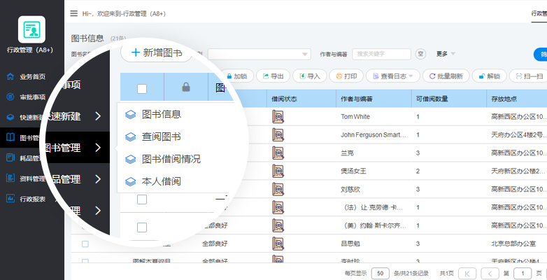 支持自定义常用功能入口;快速掌握行政管理的相关信息,并以图表形式呈现。